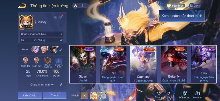 * Khách chủ động lưu thông tin acc, lịch sử web sẽ được reset mỗi đầu tháng.
